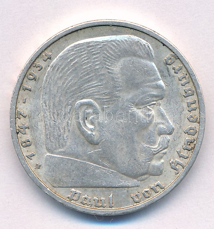 https://www.darabanth.com/en/370-Online-auction/370.0/Numismatics/Worldwide-silver-and-metal-coins~2000015/Nemet-Harmadik-Birodalom-1938A-5M-Ag-Hindenburg-T2-German-Third-Empire-1938A-5-Reichsmark-Ag-H~II2152049
