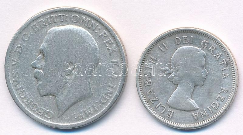 Description: Vegyes:Nagy-Britannia 1920. 1Fl Ag "V.György" + Kanada 1960. 25c Ag T:2,3