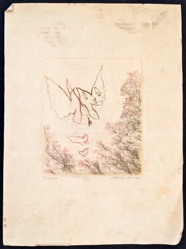 Almásy Aladár (1946-): Testvérek. Színes rézkarc, papír, foltos, lap szélén szakadással, gyűrődéssel, jelzett, számozott (31/100), 19,5×16,5 cm