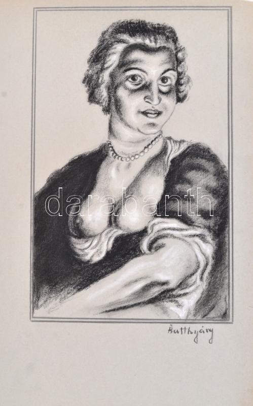 Batthyány jelzéssel: Kacér hölgy. Vegyes technika, papír, lap szélén k...