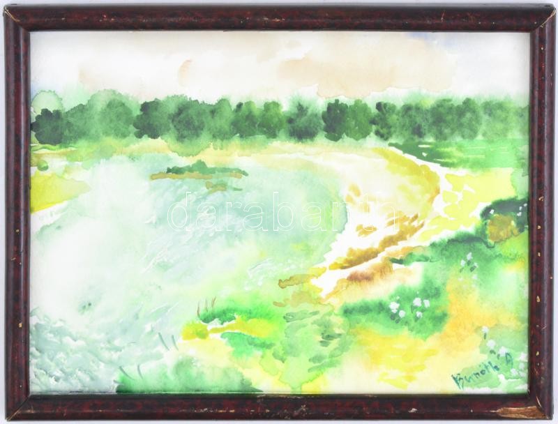 Bernáth A jelzéssel: Bányató. Akvarell, papír. Üvegezett fa keretben, ...