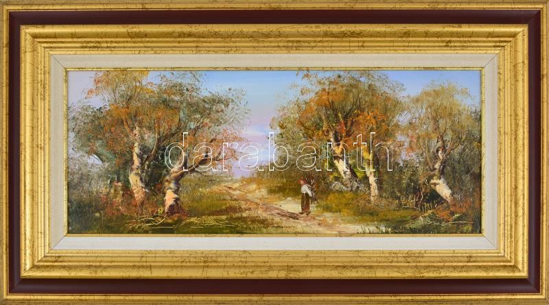 Bocsák Krisztina (1964- ): Hazafelé. Olaj, farost, jelzett, díszes fa ...