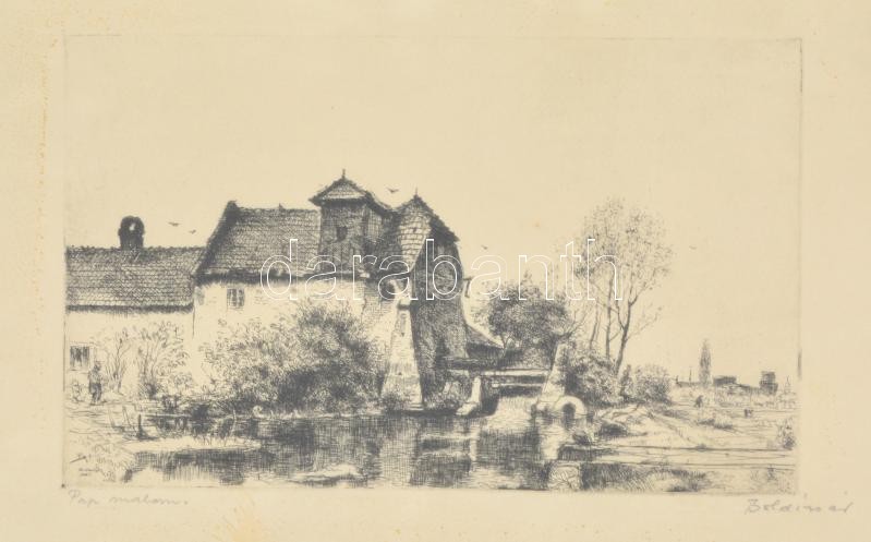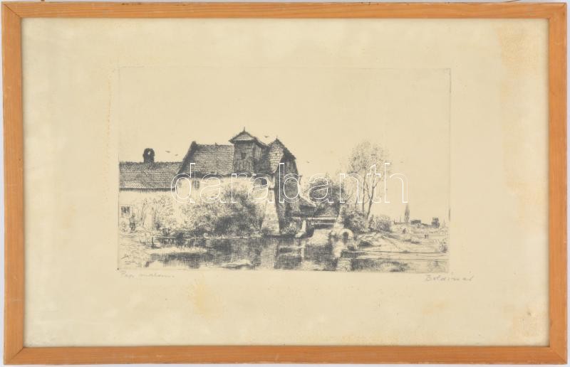 Boldizsár István (1897-1984): Pap malom. Rézkarc, papír, foltos, jelze...