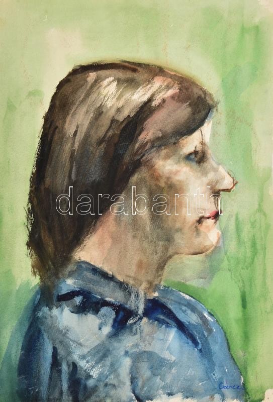 Czencz jelzéssel: Női portré. Akvarell, papír. 50x34,5 cm