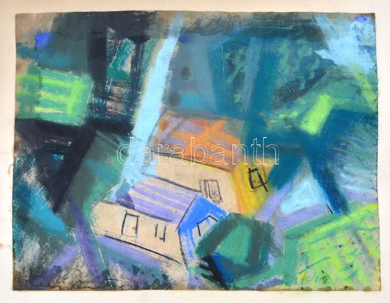 Deli Antal (1886-1960): Házak. Pasztell, papír, jelzett 26x34 cm