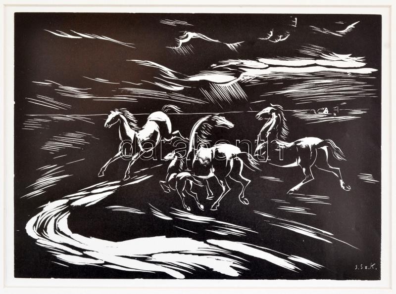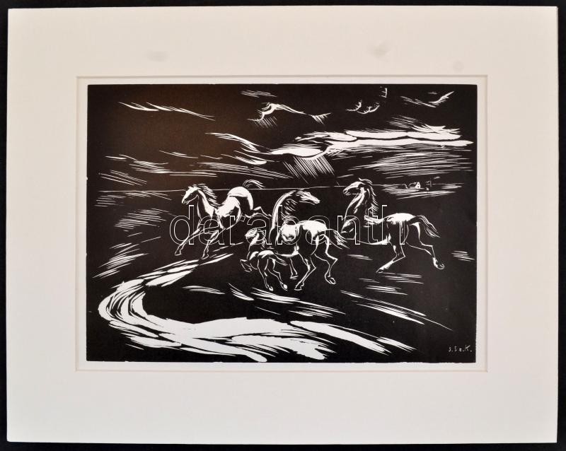 Gáborjáni Szabó Kálmán (1897-1955): Lovak, fametszet, papír, jelzett a...