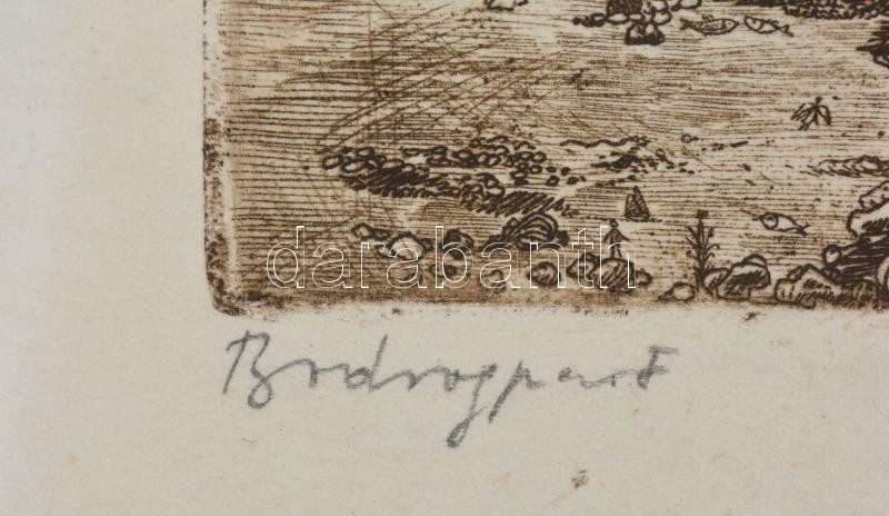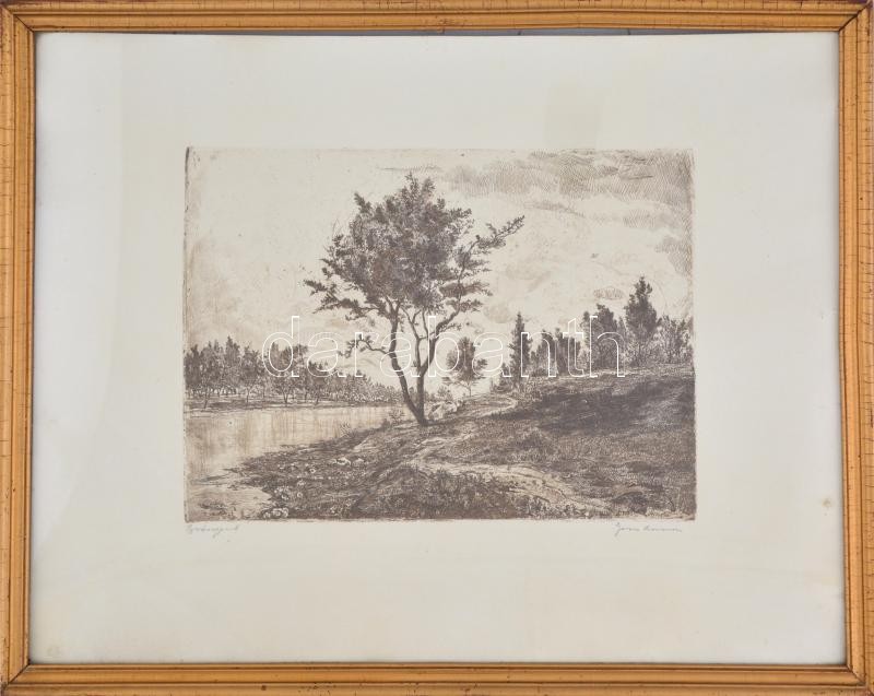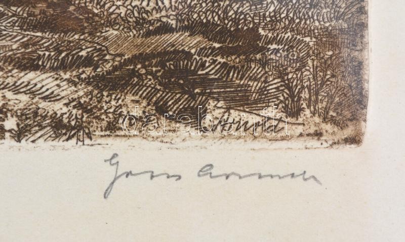 Gross Arnold (1929-2015): Bodrogpart. Rézkarc, papír, jelzett, üvegeze...