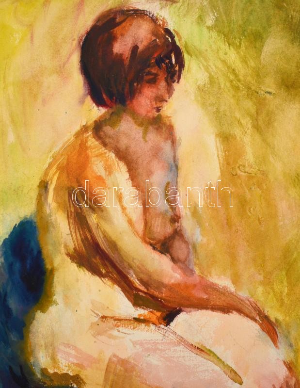 Juhász Erika (1926-2018): Ülő akt. Akvarell, papír, jelzett, ajándékoz...