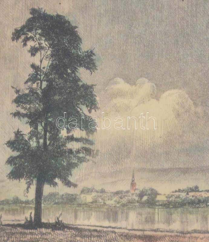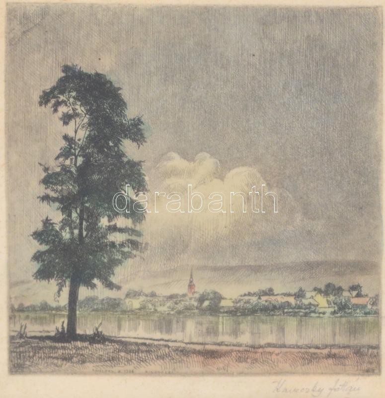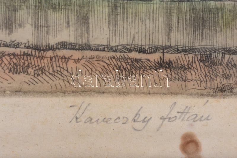 Kaveczky Zoltán (1897-1965): Dunamenti táj, színezett rézkarc, papír, ...