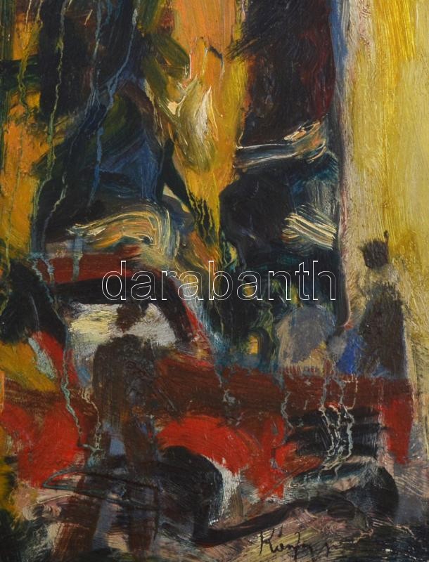 Konfár jelzéssel: Sárga-vörös kompozíció. Olaj, farost, 53x25,5 cm