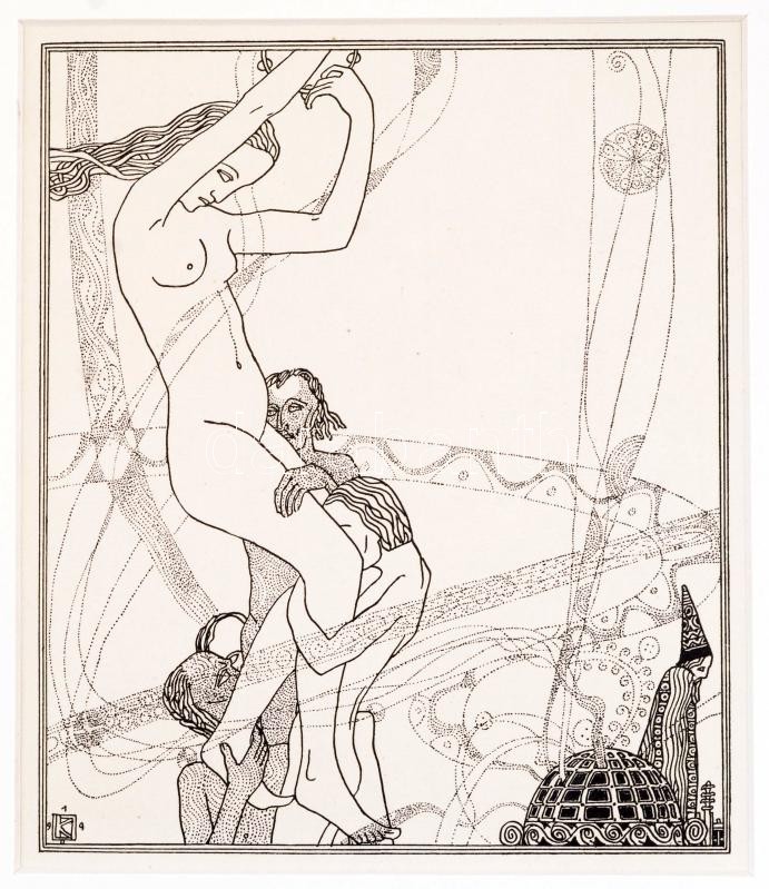 Kozma Lajos (1884-1948): Örvényben. Cinkográfia, papír, jelzett a cinkográfián, paszpartuban, 19,5×16,5 cm