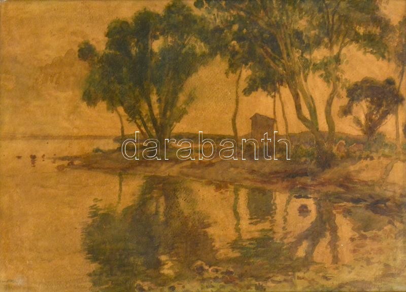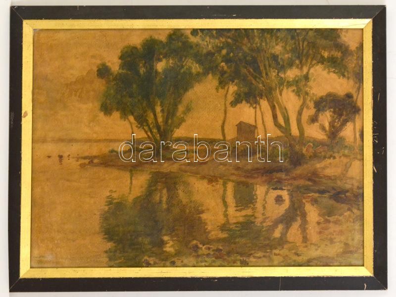 Mendlik Lajos (1903-1985): Vízparti táj, akvarell, papír, jelzett, üve...