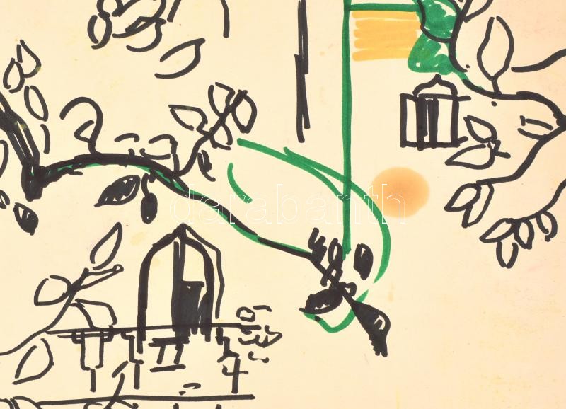 Molnár Róza (1900-1977): Ágas-bogas. Filctoll, papír, foltos, jelzett....