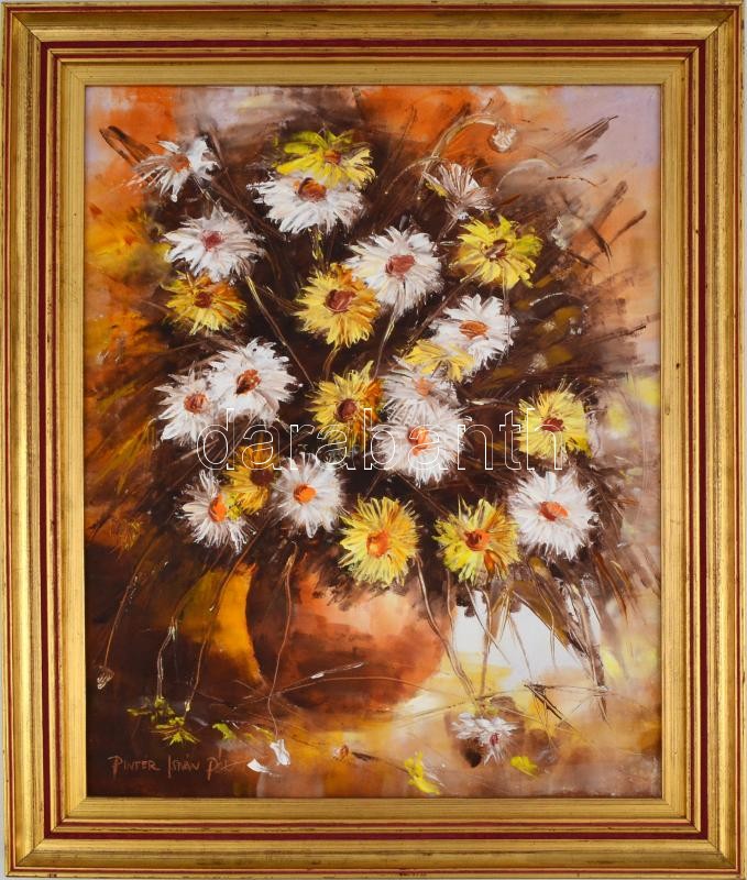 Pintér István Pál (1948-): Virágcsendélet. Olaj, farost, jelzett, dísz...