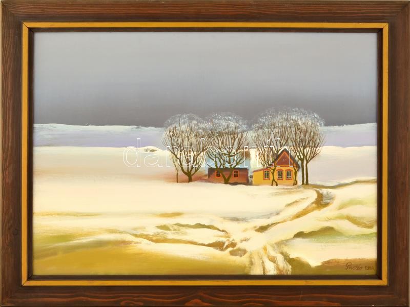 Pintér József (1922-2002): Téli táj. Olaj, farost .Jelzett. 50x70 cm F...