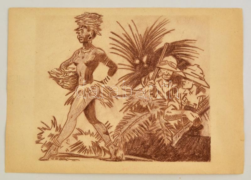 Sebők jelzéssel: Egzotikus szépség. Kréta, papír, jelzett, A Pesti Izé bélyegzőjével. 19×22 cm