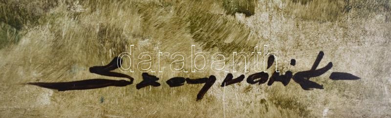 Szegvári Károly (1920-2002): Kirándulók. Olaj, farost, jelzett, fa keretben, 50x60 cm