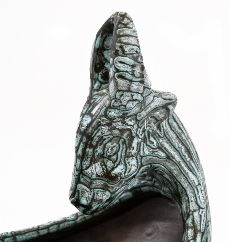 Gorka Iparművészeti Vállalatos kosfejes kínáló, repesztett mázas, jelzett, hibátlan m:18 cm