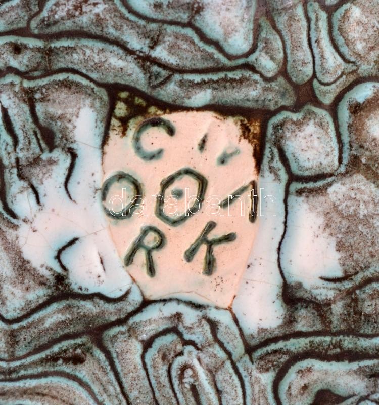 Gorka Iparművészeti Vállalatos kosfejes kínáló, repesztett mázas, jel...