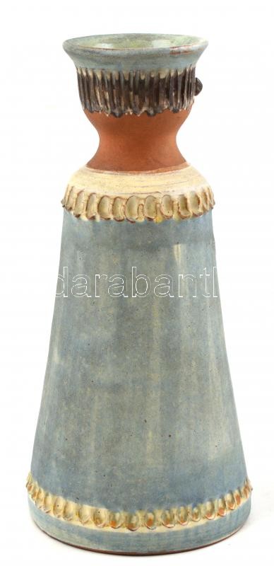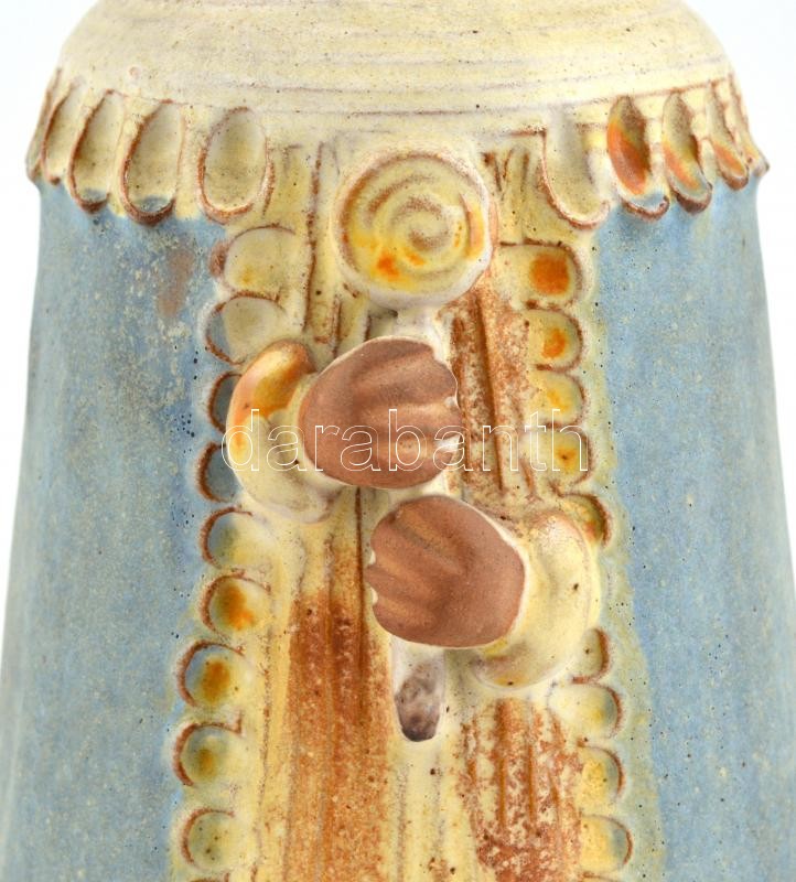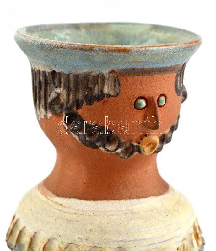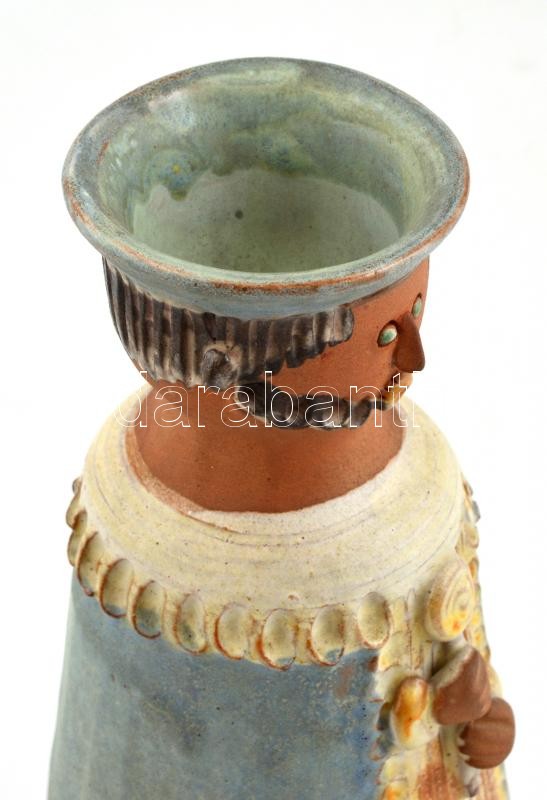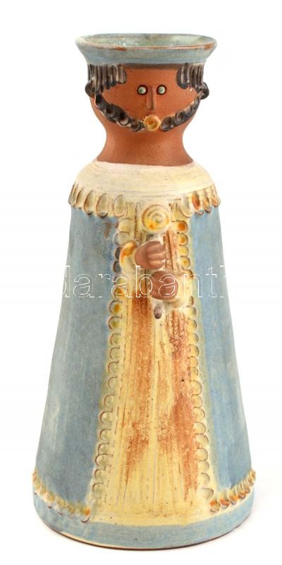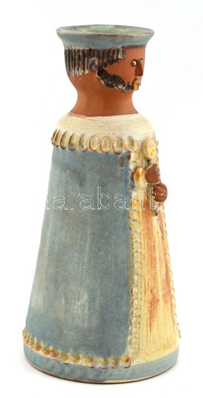 Kiss Roóz Ilona (1920-2010): Figurális gyertyatartó, festett mázas kerámia, jelzett, apró kopásokkal, m: 25,5 cm