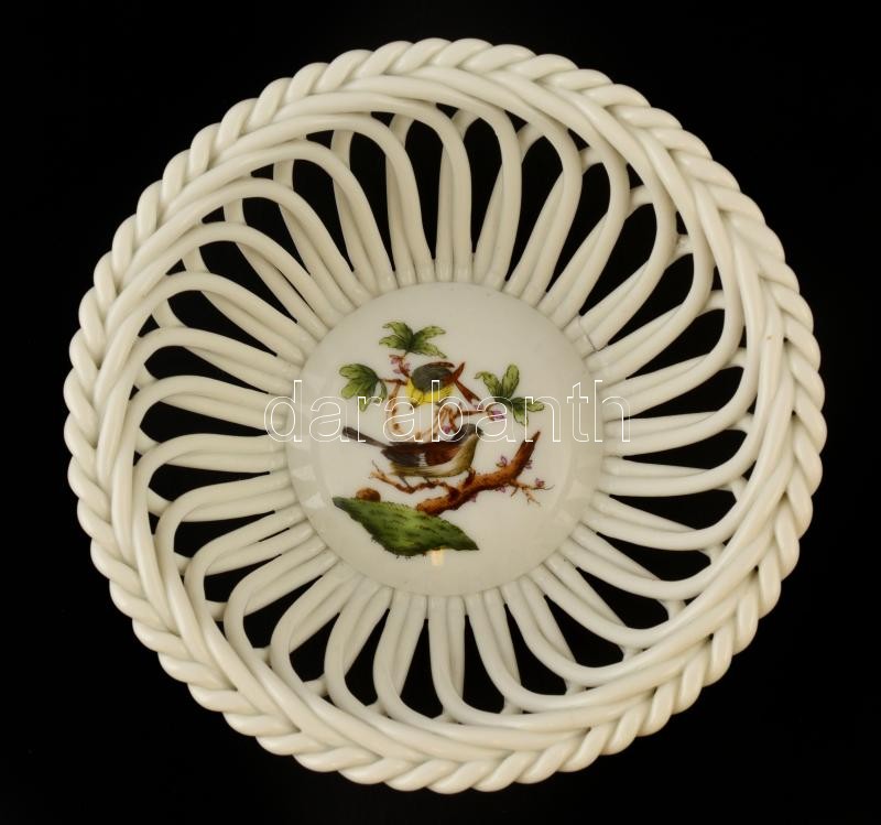 Herendi Rotschild mintás áttört tálka, kézzel festett, jelzett, kis kopásnyomokkal, d: 11,5 cm