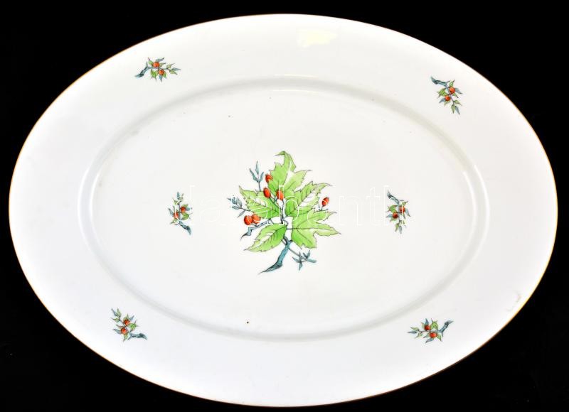 Herendi csipkebogyó mintás sültes tál, kézzel festett, jelzett, ksi mázhibával. d: 44x32 cm