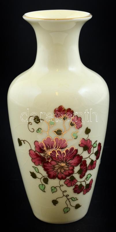 Zsolnay orchidea mintás váza. Kézzel festett, jelzett, mázrepedésekkel 17 cm