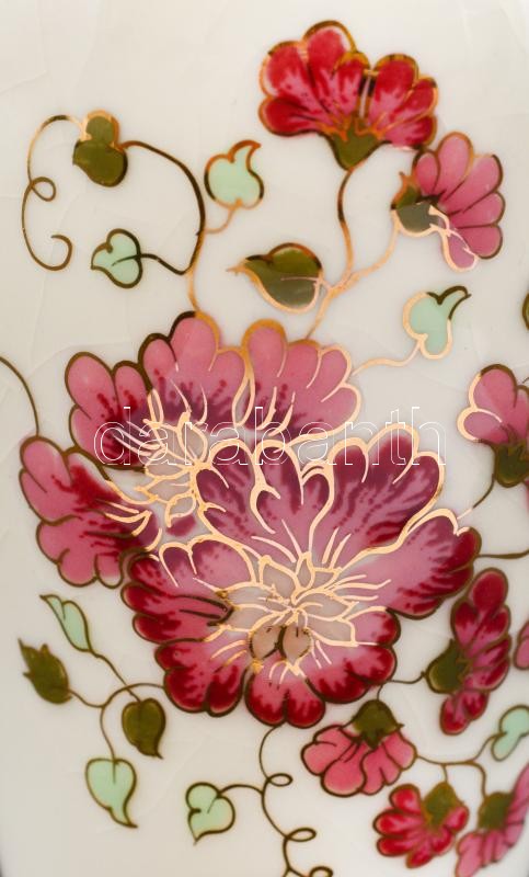 Zsolnay orchidea mintás váza. Kézzel festett, jelzett, mázrepedésekkel...