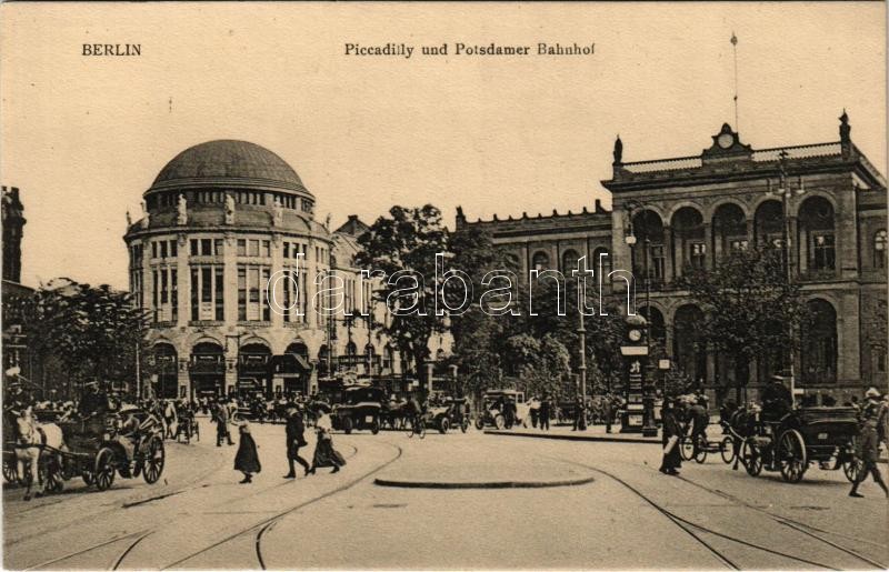 Berlin, Piccadilly und Potsdamer Bahnhof / railway station, horse-drawn carriages, automobiles. Kunstverlag Max O'Brien 1912. 199.