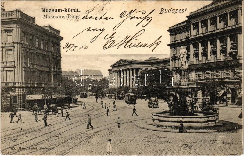 1900 Budapest VIII. Múzeum körút, Kálvin tér, villamosok, Barakovits t...
