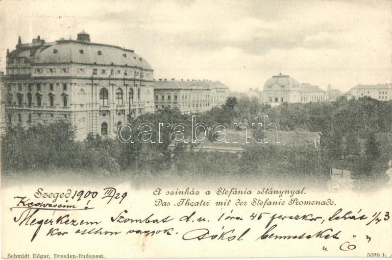1900 Szeged, Színház, Stefánia sétány. Schmidt Edgar kiadása (EK)