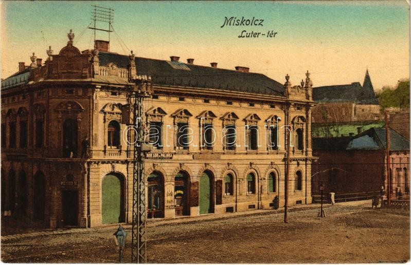 1911 Miskolc, Luter tér, Mesko R. üzlete, bor, sör és pálinka mérés