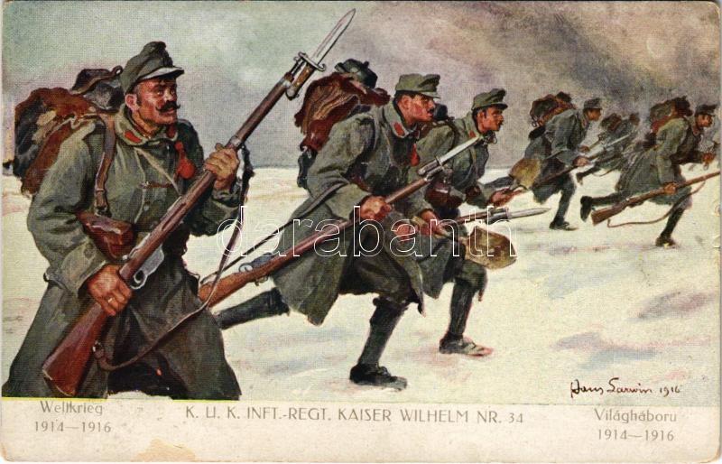Description: Weltkrieg 1914-1916 - K.u.K. Inft.-Regt. Kaiser Wilhelm Nr. 34. Verlag K.u.K. Kmdo. der 27. Inf. Trp. Dion. / WWI Austro-Hungarian military infantry regiment s: Hans Larwin (felületi sérülés / surface damage)