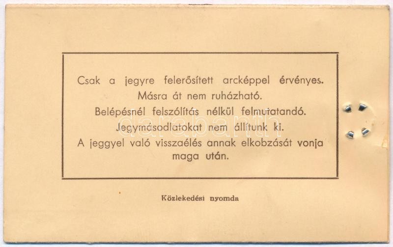 Description: 1940 Fényképes igazolvány, belépőjegy a Szent-Margiszigetre, Dr. Sivó Rudolf részére kiállítva 0612 számmal. Szent-Margisziget Gyógyfürdő Rt. Fénykép sérült.