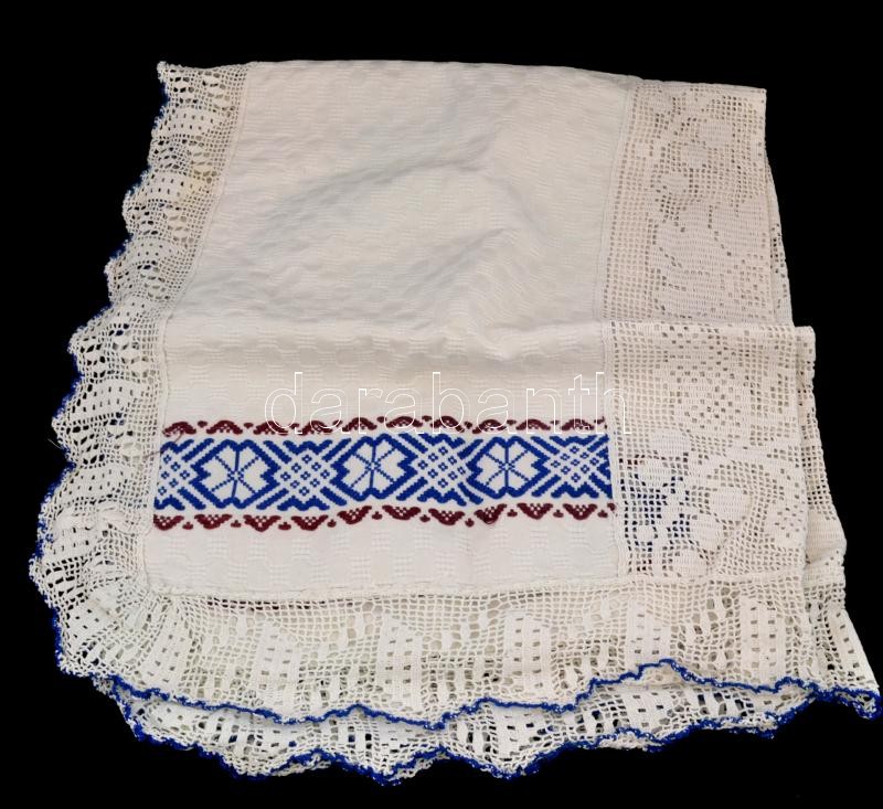 Len, részben csipkés abrosz (asztalterítő), 110x160 cm