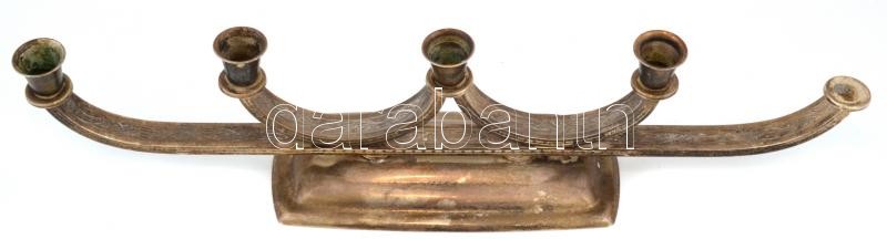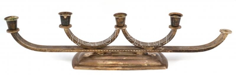 Ötágú fém, talpas gyertyatartó, egyik tartó hiányzik, kopottas állapotban 11,5x50 cm