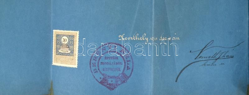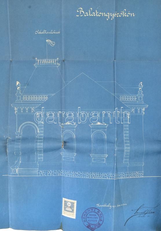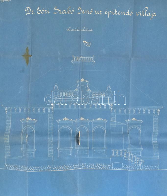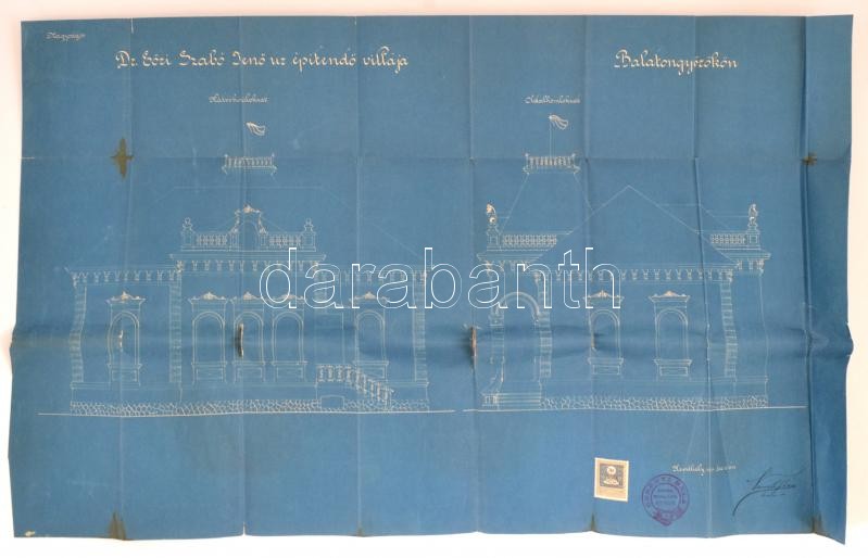 1903 Dr. Eőri Szabó Jenő építendő villájának tervrajza Balatongyörökön, szakadással, 46×75 cm