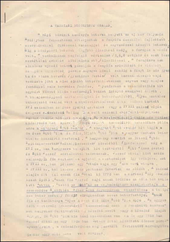 Description: 1956 Tamási Anna, Tamási Áron író testvérének saját kézzel írt levele Süttő Istvánnak. Mellékelve Kós Károly a vagyrasi bútorfestőkről szóló korrektúrázott gépirata