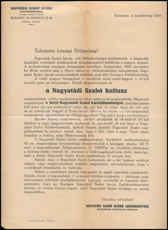 https://www.darabanth.com/en/371-Online-auction/371.0/Art-and-other-collectibles/Printed-Materials~500030/1932-Nagyatadi-Szabo-Istvan-Emlekbizottsag-nyomtatott-levele-szoborallitas-celjabol-kozs~II2165398