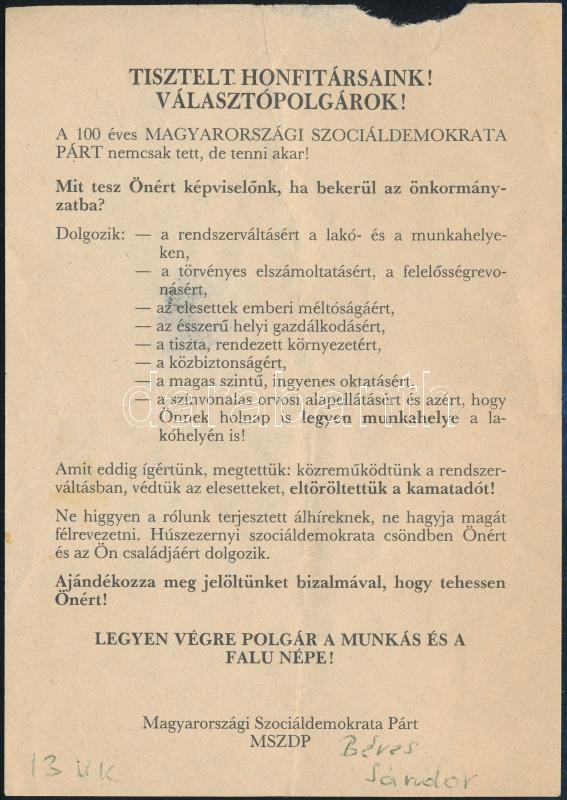 1990 A Magyarországi Szociáldemokrata Párt választási röplapja