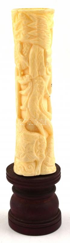 Díszváza / faragott csont szobrocska fa talapzaton 16,5 cm