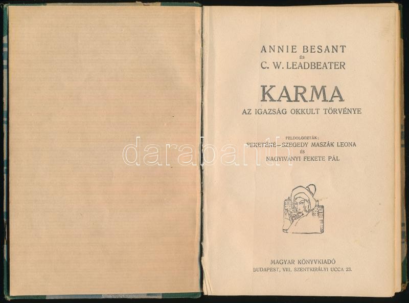 Annie Beasant-C. W. Leadbeater: Karma. Az igazság okkult törvénye. Fel... https://www.darabanth.com/en/371-Online-auction/371.0/Books/Books-Other-rarities~1000020/Annie-Beasant-C-W-Leadbeater-Karma-Az-igazsag-okkult-torvenye-Feldolgoztak-Feketene-Szeg~II2164550
