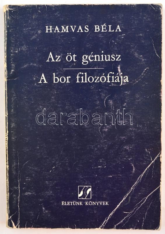 Hamvas Béla: Az öt géniusz. A bor filozófiája. Életünk könyvek. Szomba... https://www.darabanth.com/en/371-Online-auction/371.0/Books/Books-Other-rarities~1000020/Hamvas-Bela-Az-ot-geniusz-A-bor-filozofiaja-Eletunk-konyvek-Szombathely-1989-Eletunk~II2160906