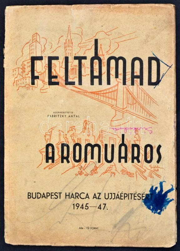 Feltámad a romváros. Budapest harca az ujjáépítésért. 1945-47. Szerk.: Fabritzky Antal. Bp., Légrády Rt.-ny., 51+1 p. Fekete-fehér fotókkal illusztrált. Kiadói papírkötés, szakadt, foltos borítóval.