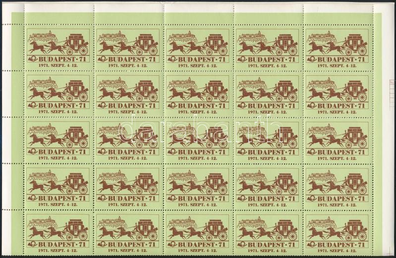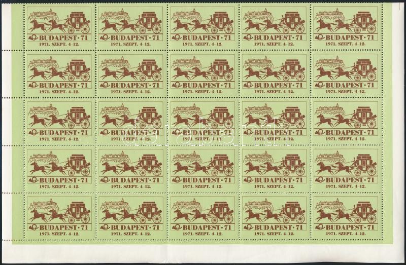 1971 Budapest 71 bélyegkiállítás zöld levélzáró 50-es hajtott teljes ív