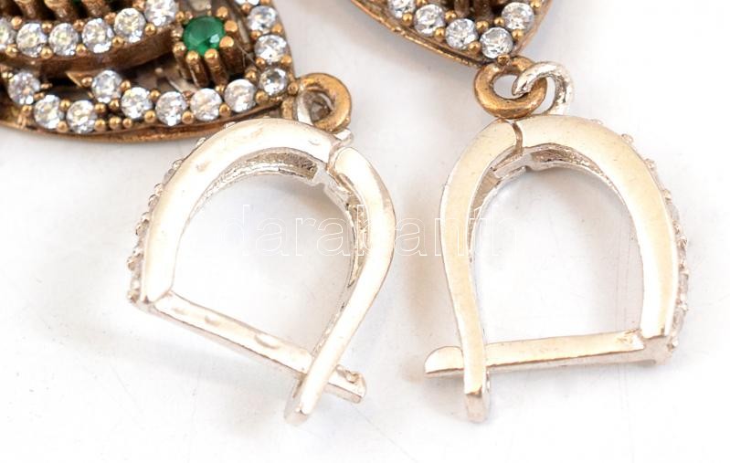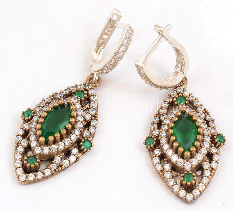 Aranyozott ezüst(Ag) ovális fülbevalópár, sok kővel, jelzett, 4×1,7 cm, bruttó: 10,3 g