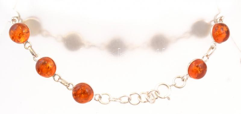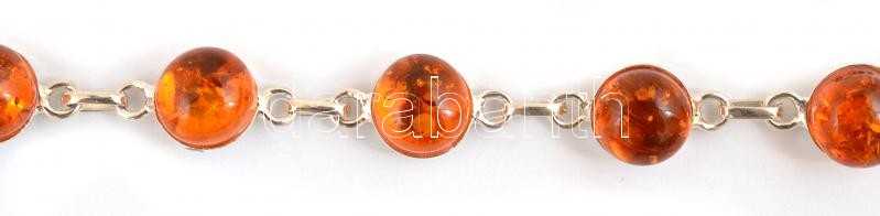 Ezüst(Ag) karkötő borostyánnal, jelzett, h: 17,5 cm, bruttó: 4,4 g
