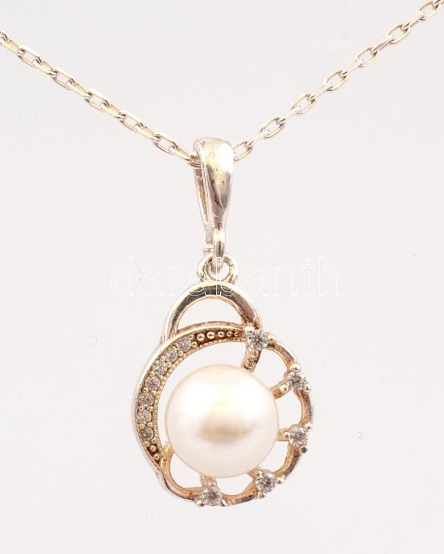 Ezüst(Ag) nyaklánc, gyöngyös függővel, jelzett, h: 3 és 49 cm, bruttó: 4,4 g