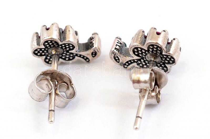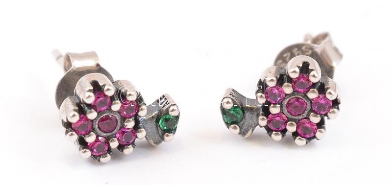Ezüst(Ag) virágos fülbevalópár, jelzett, 0,9×0,6 cm, bruttó: 1,6 g