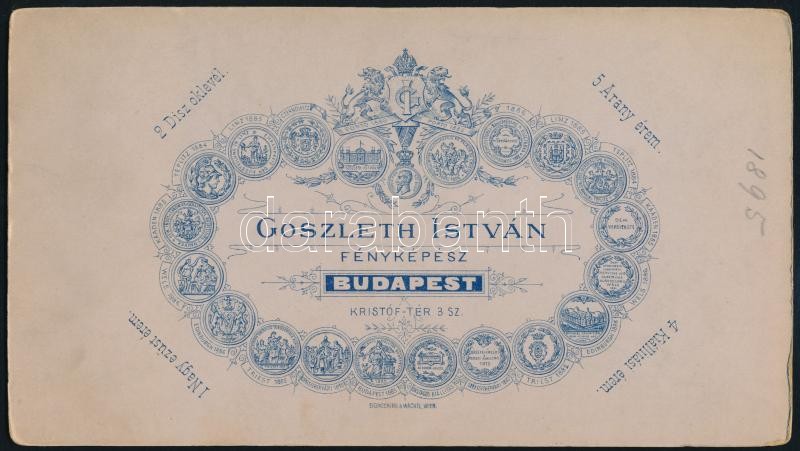 1895 Budapest, Goszleth István (1850-1913) fényképész műtermében készült vintage fotó, datálva, 20,5x11,5 cm